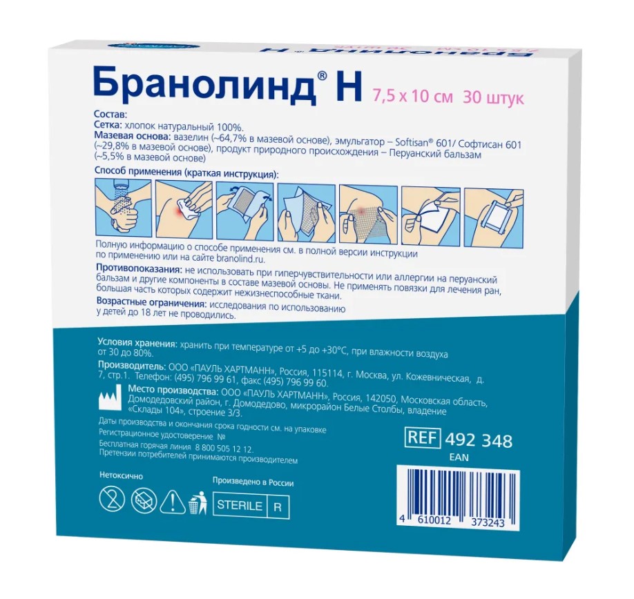 Повязка Branolind N (Бранолинд Н) мазевая с перуанским бальзамом 7,5 х 10см (30 шт.)